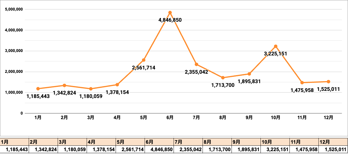 1年間合計で24,685,737円でした。