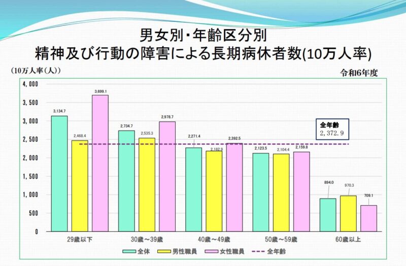 20代女性にメンタル起因の長期休職が突出して集中しています。