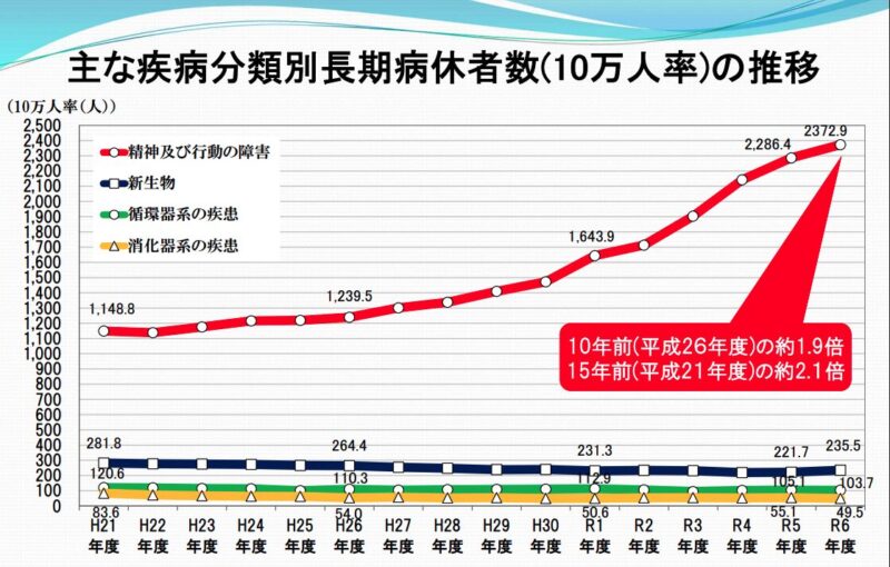 メンタル休職者は10年で2倍に激増。しかも若手の方が病んでいる